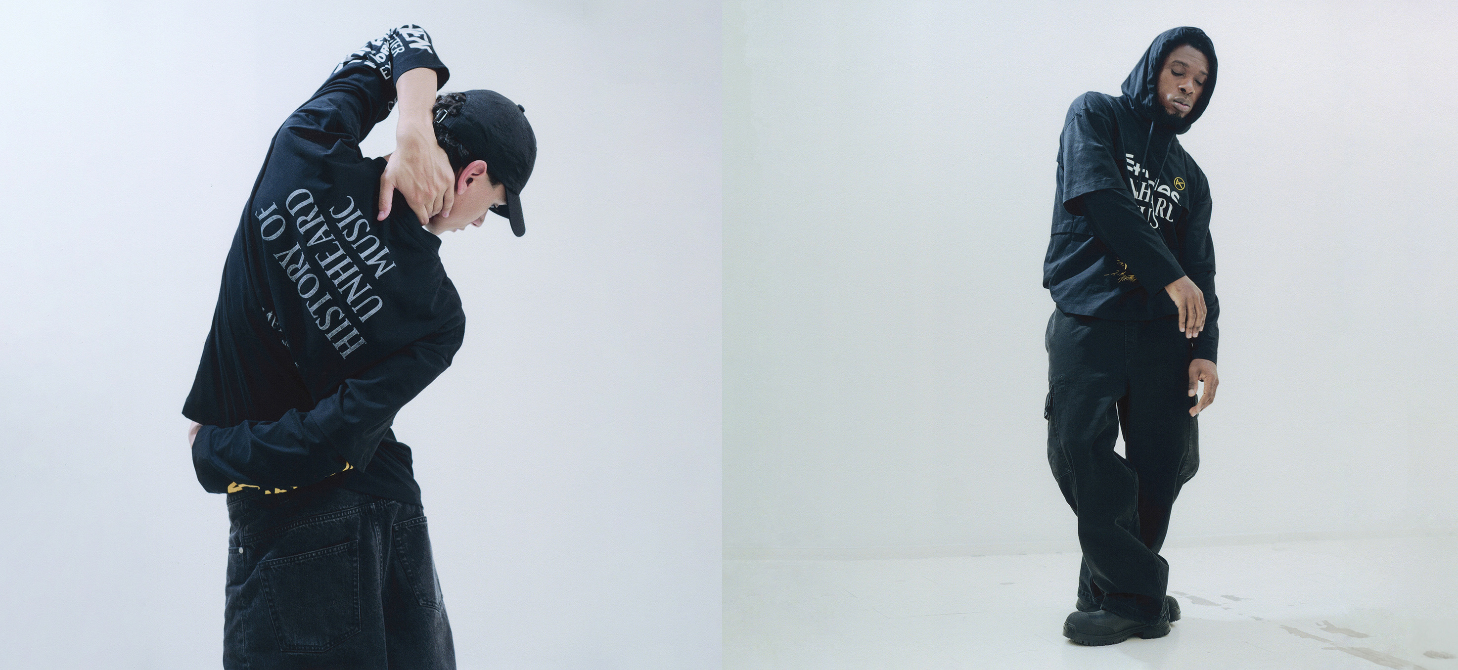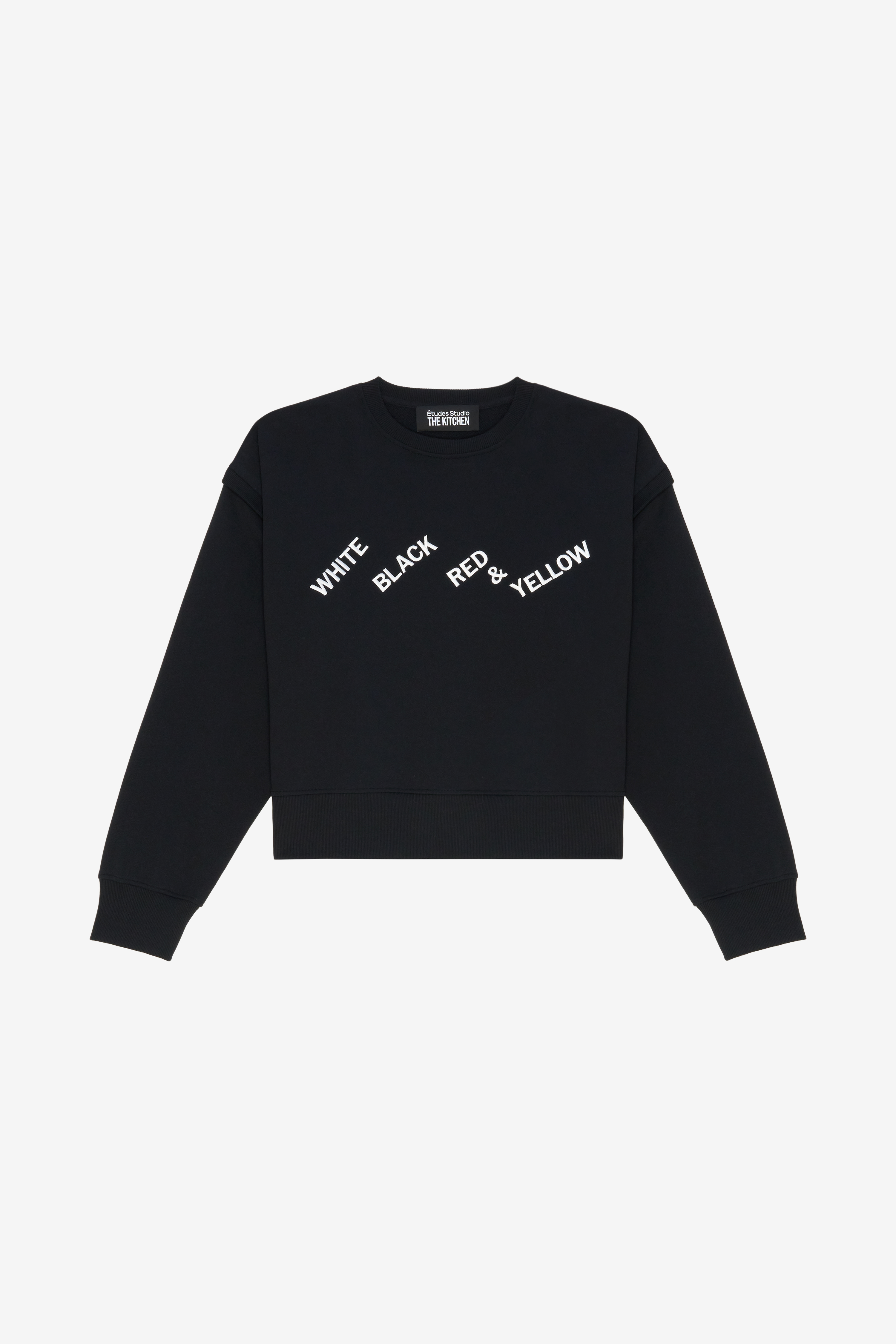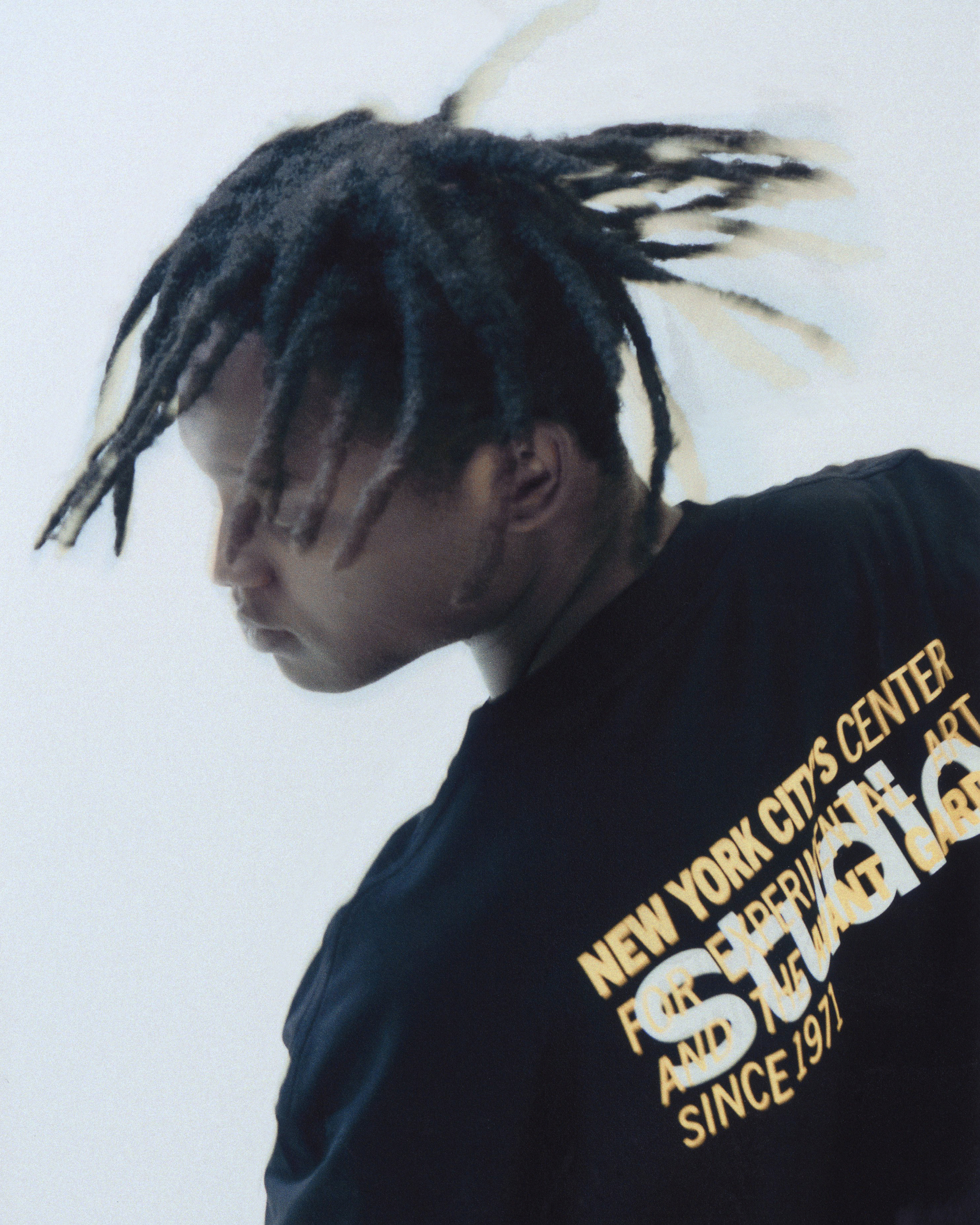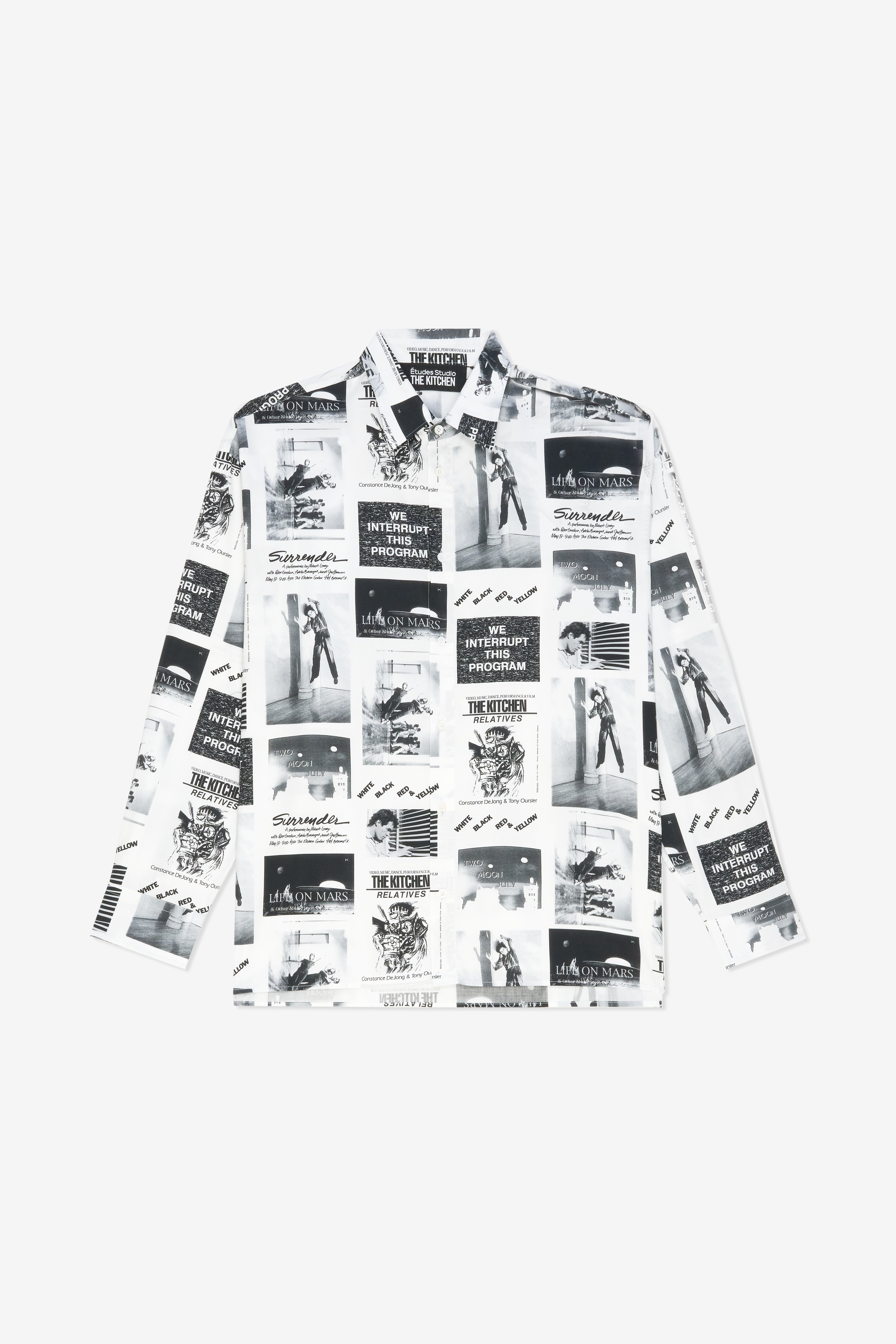 This capsule collection mixes works by different artists, reflecting the collaborative spirit of Études Studio and the multidisciplinary nature of The Kitchen. This experimental creative hub, dedicated to staging the global avant-garde, inspires contemporary pieces that celebrate moments of rare artistic freedom. With a predominance of black and white, enhanced by touches of yellow, the collection features archival images, references to performances and poster details.