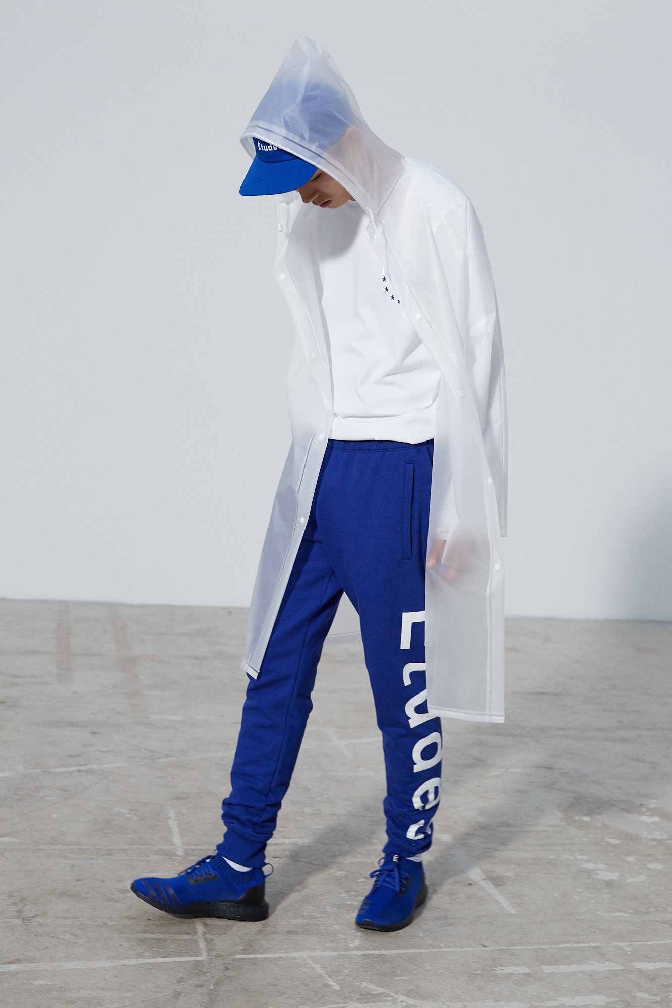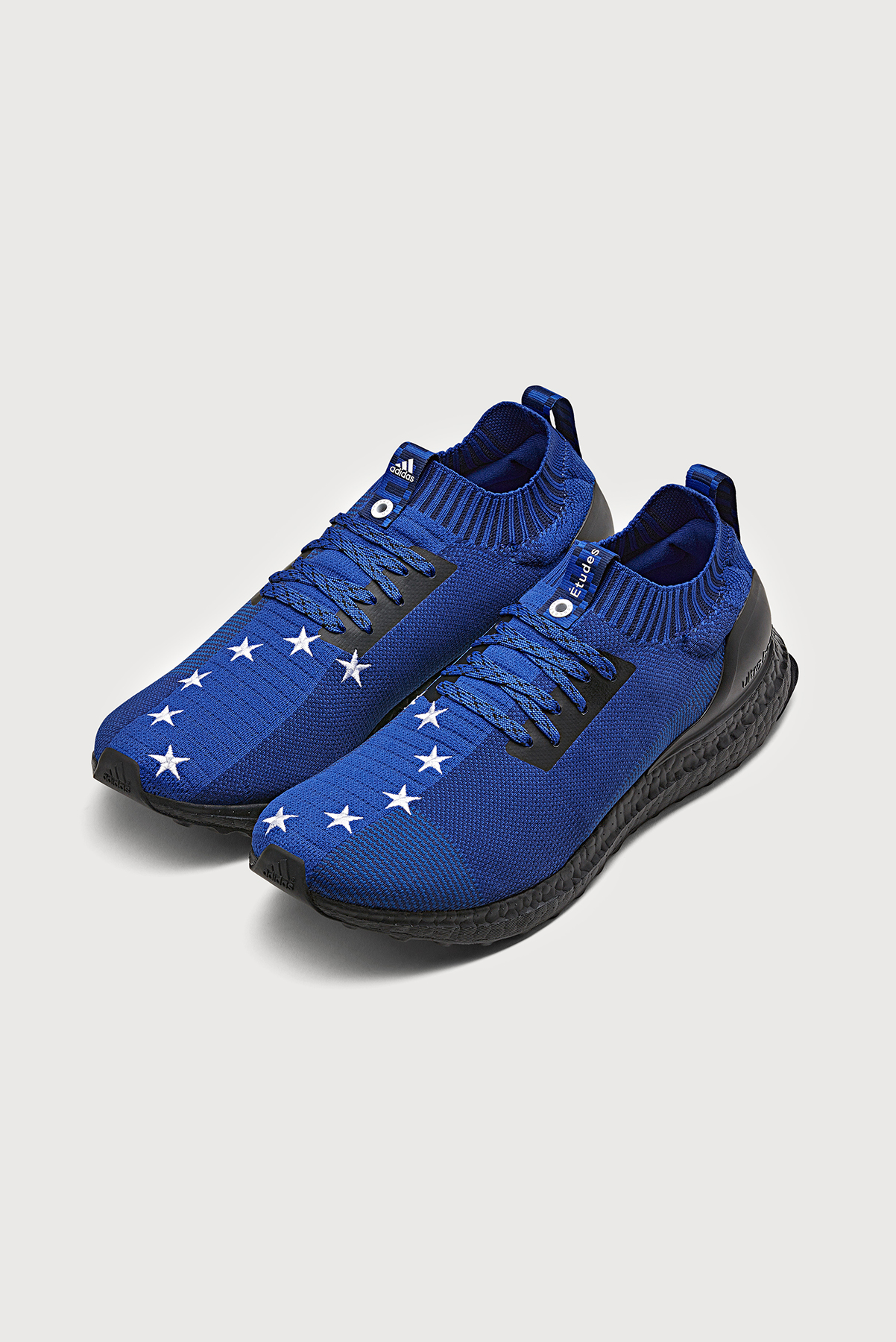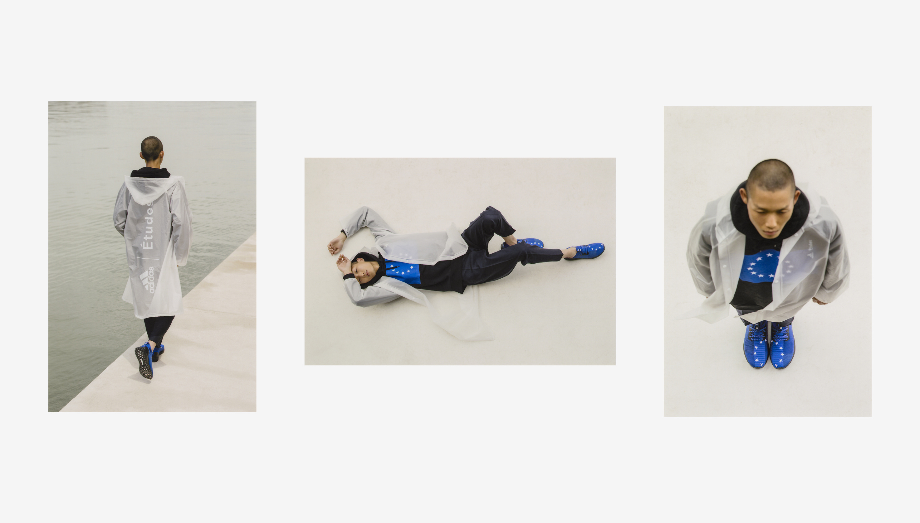 Alongside adidas’ exclusive technologies for the shoe model, we bring in our distinctive elements; namely the color blue, the recurring theme of European stars, and a pattern of the brand’s capital É that discreetly reappears in a patchwork of different weaving techniques. Accompanying the UltraBOOST, a pack-away rain coat was additionally designed—once again echoing the functional and minimal.