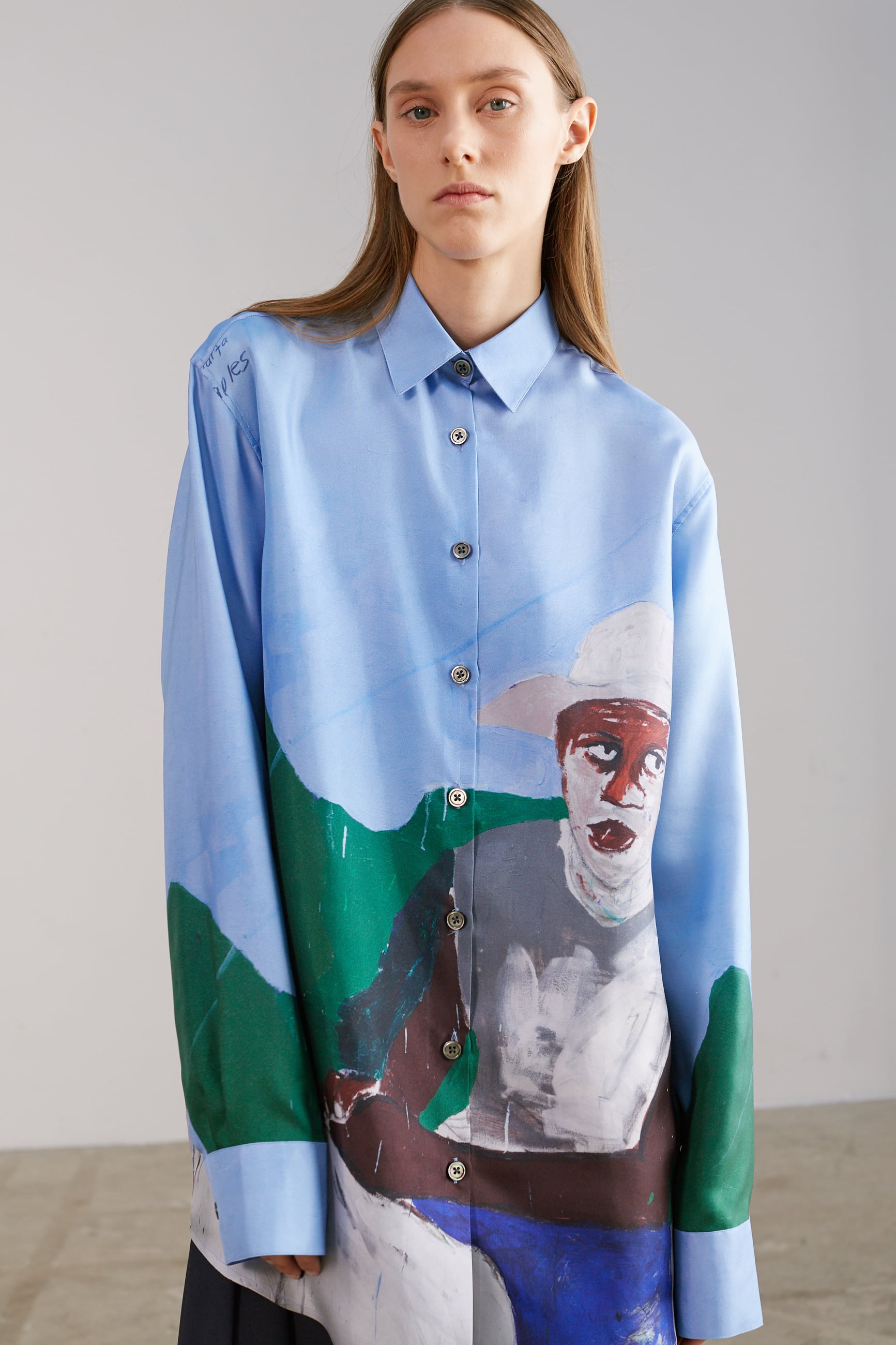 Employing Taylor’s large scale paintings into our collection, N°14 offers West American vibes explored through a palette of primary colors. The collaborative topography between Taylor and Études Studio results in several pieces of clothing — a short- and long-sleeve silk shirt, a suede jacket, a hoodie — and a silk top especially meant for women. Visually announcing sense of mundanity with fragments of day-to-day truths, the creative linkage with the artist automatically reminds us of the strange wonders that rests in all the things governed by the principles of humanity.