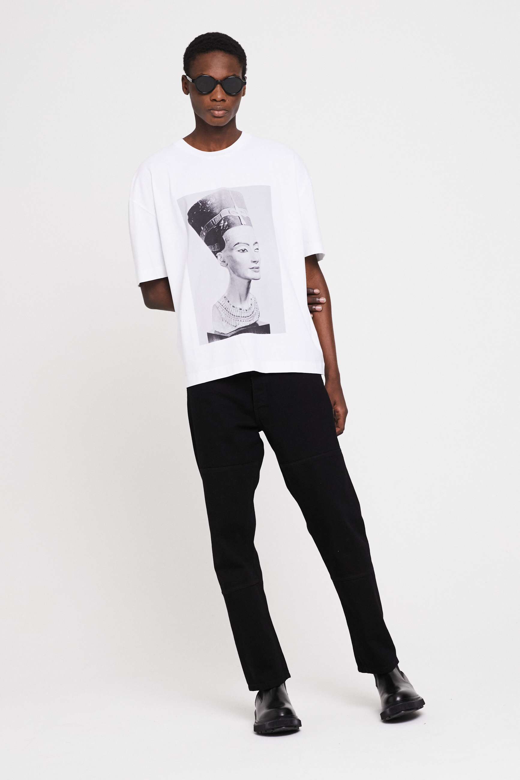 The collaboration with the Brooklyn Museum and Lorraine O’Grady consists of two t-shirts and one hoodie, all three products exhibiting two of the artist’s most pivotal artworks: her Cutting Out The New York Times series (1977), as well as Miscegenated Family Album (Sisters I), L: Nefernefruaten Nefertiti; R: Devonia Evangeline O'Grady (1980/1994).
