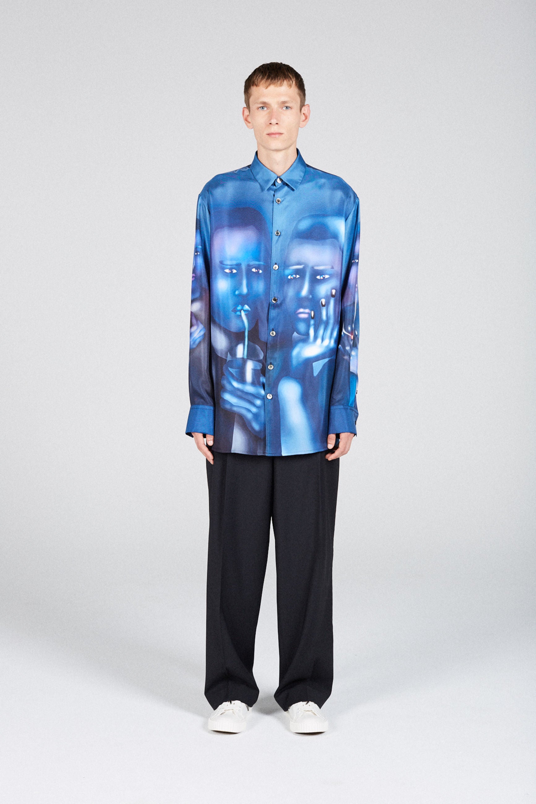 The Swiss artist was invited to bring her nostalgic canvases onto the garments of Études Studio new season, remembering a familiar atmosphere of men smoking and drinking inside bars, hands holding hands or faces. The collaboration results in a temporary and gentle setting of pensiveness, asking us to live and have lived. After all, we’ve been here for some time. But also, not really at all.