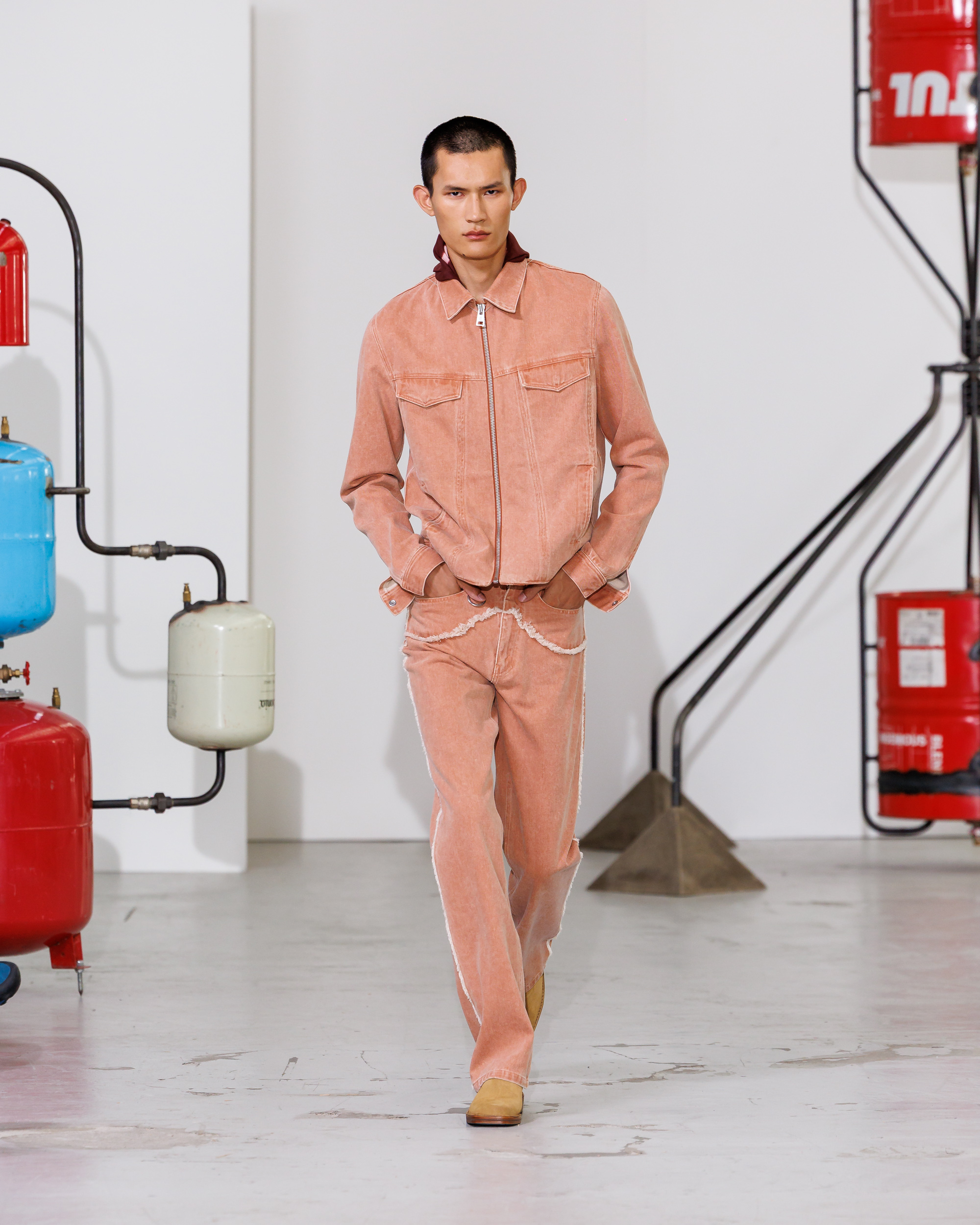 Step into our Spring–Summer 2026 runway show, where Collection No. 27 is unveiled. Titled Surroundings, the collection reflects on the figure of the artist and their wardrobe. The guiding thread is Land Art, used as a lens to explore the traces left on both landscape and clothing.